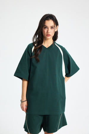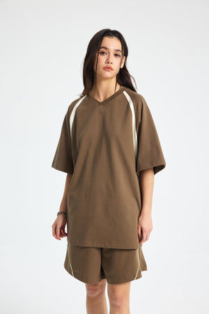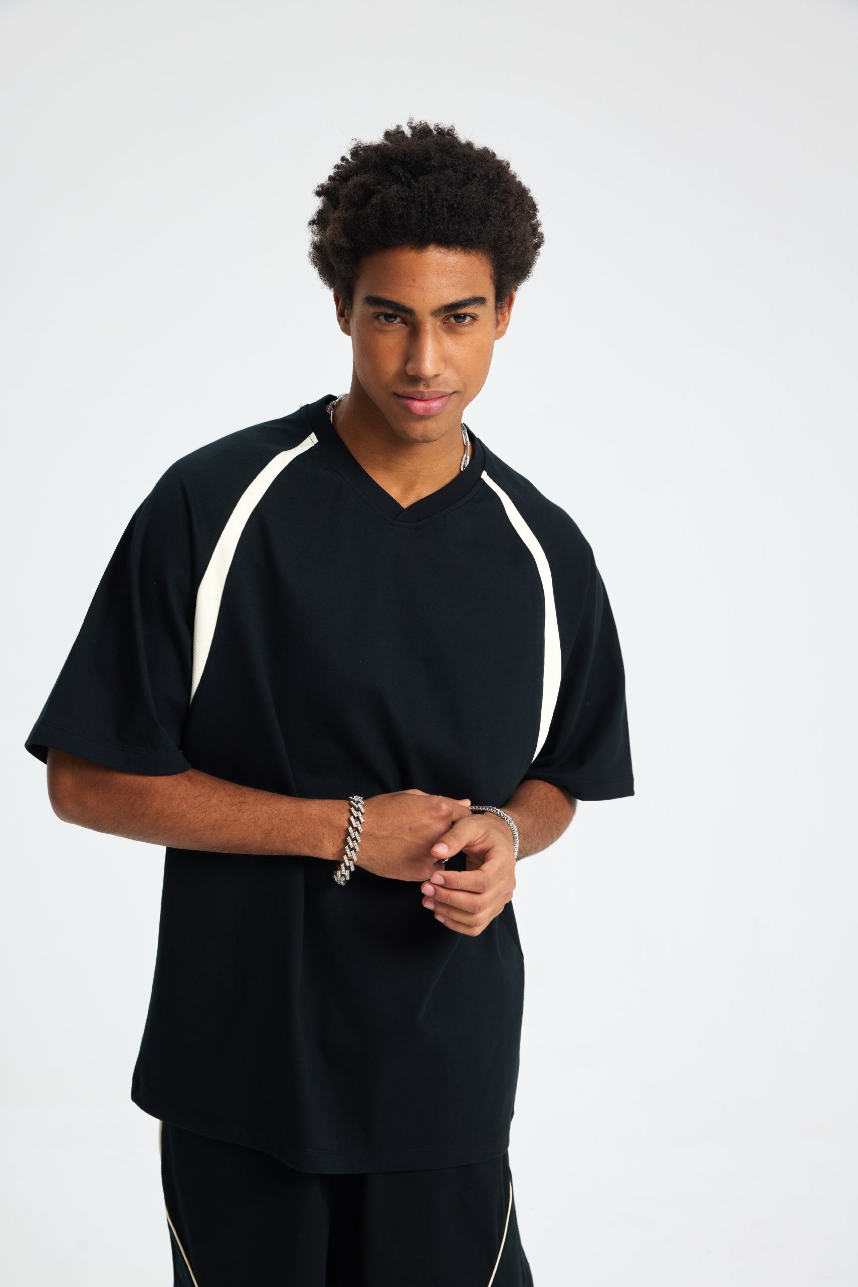 - Sport-Luxe Aesthetic: V-neck detail with contrast raglan inserts for a retro athletic vibe updated for modern streetwear.