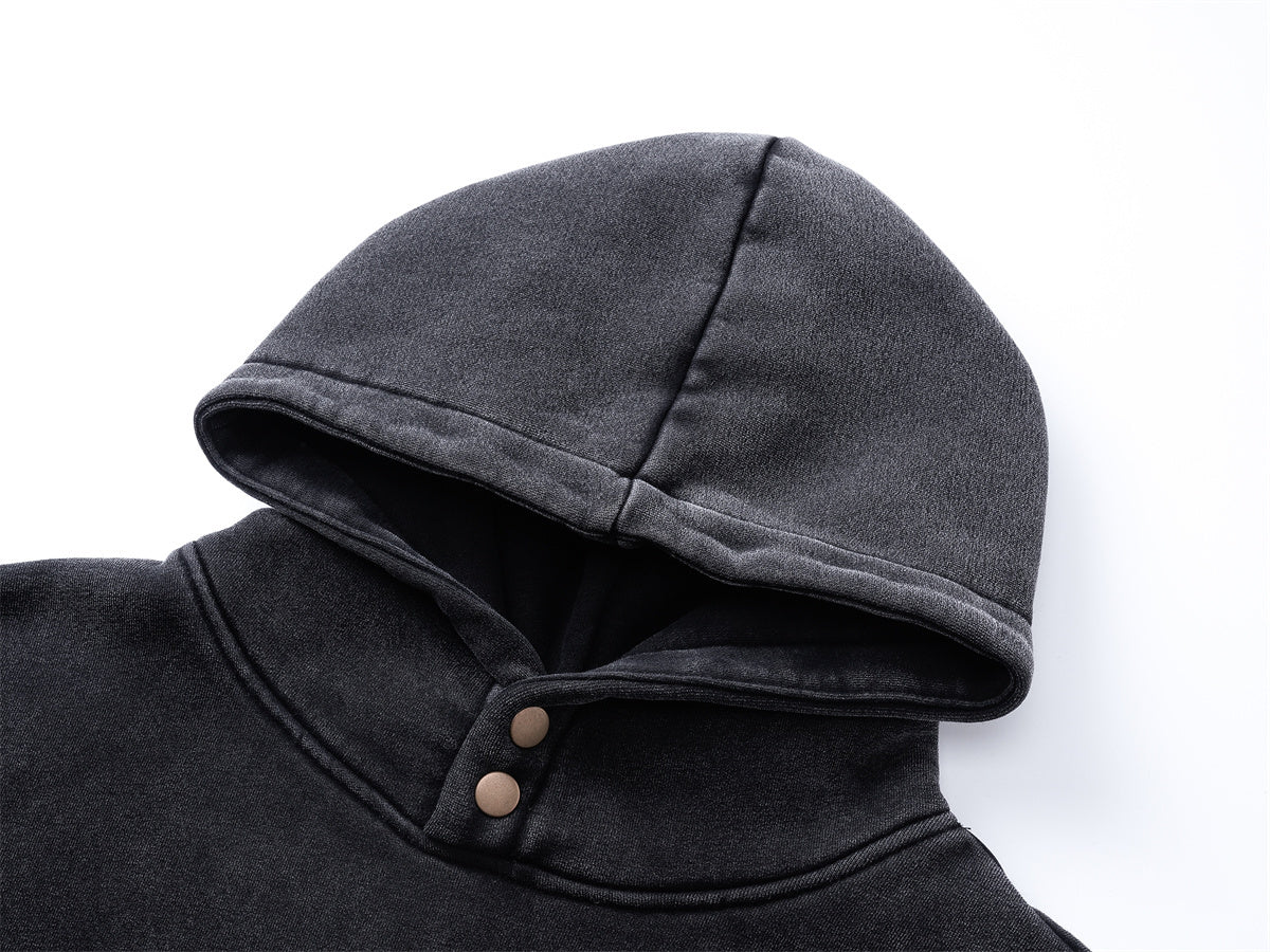 - Buttoned Hood Detail: Distinctive four-button closure adds a functional and stylish twist to the classic hoodie silhouette.