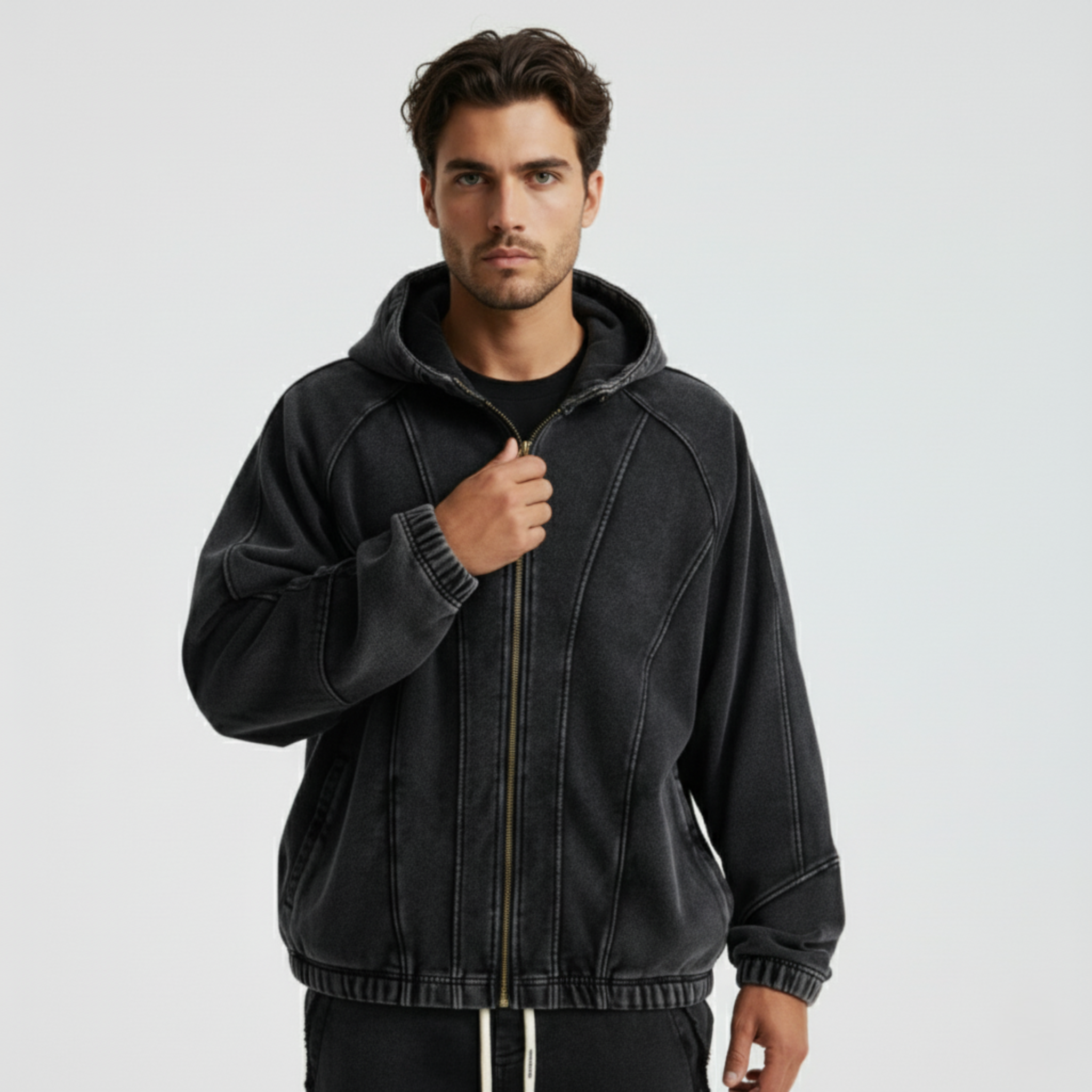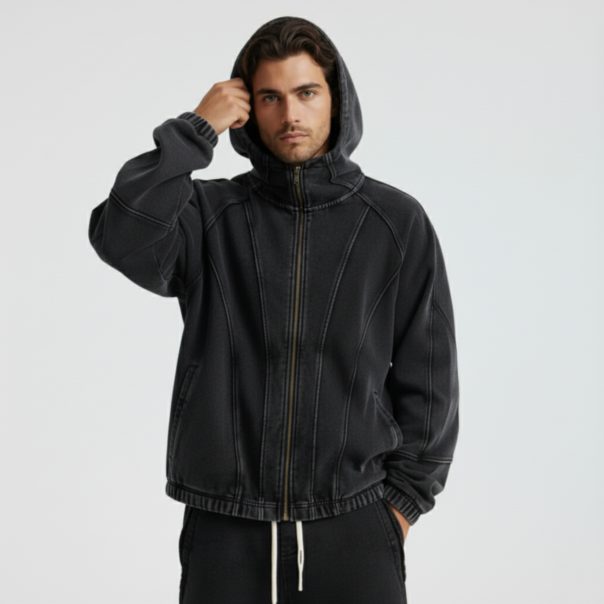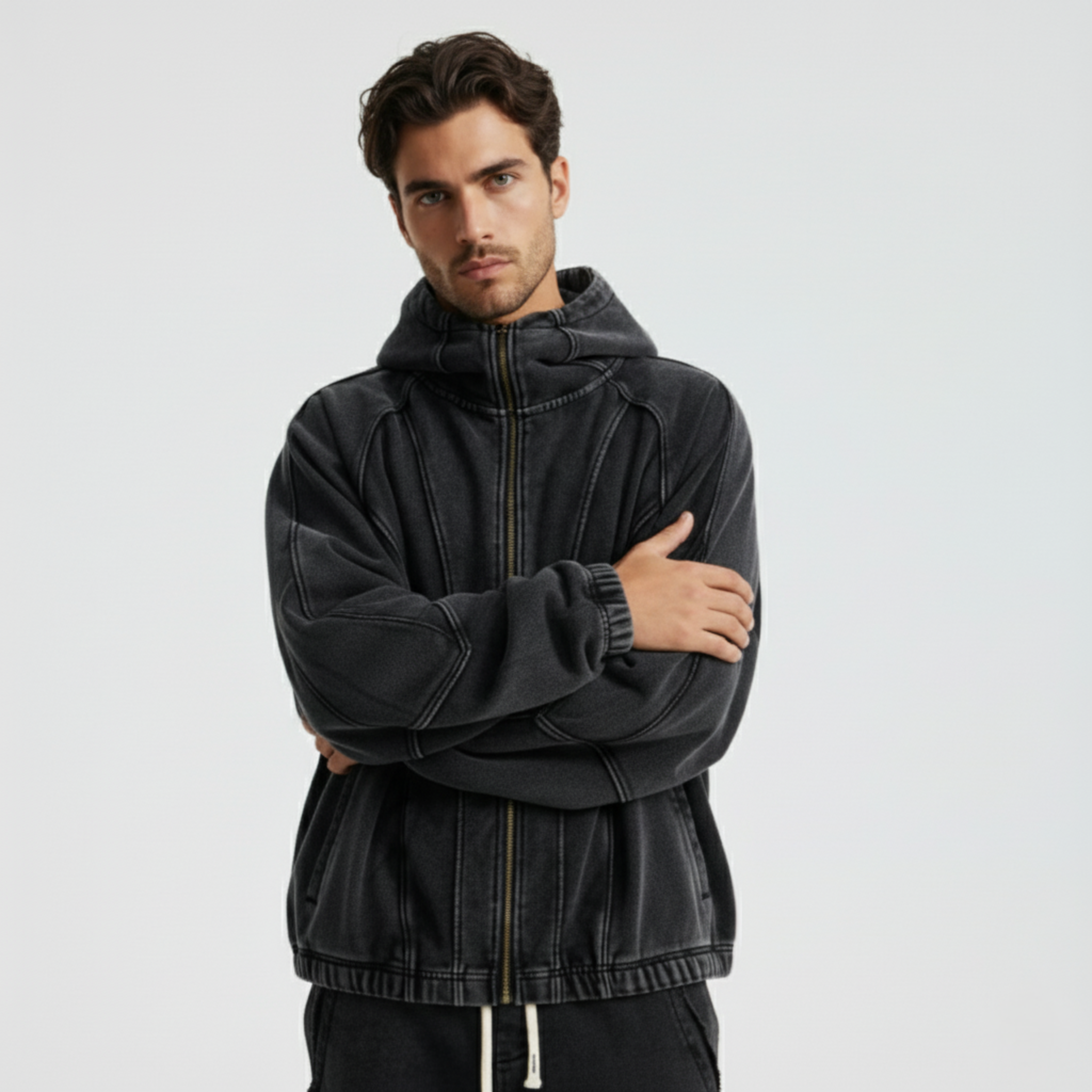The Siggnia Veyron Structured Zip Hoodie blends technical precision with a minimalist streetwear aesthetic. Designed for elevated versatility, this jacket delivers premium structure, superior comfort, and an effortless oversized silhouette.