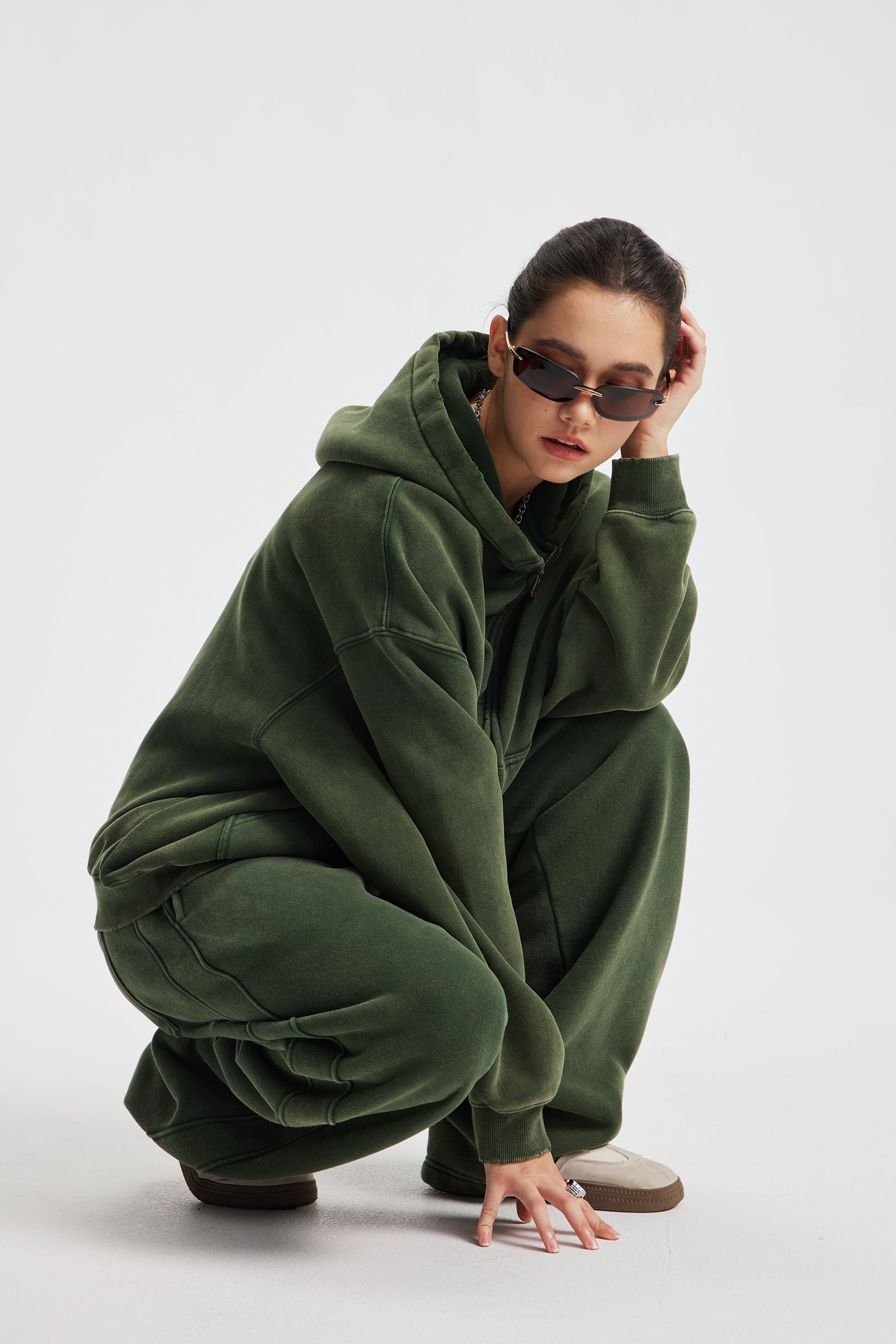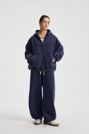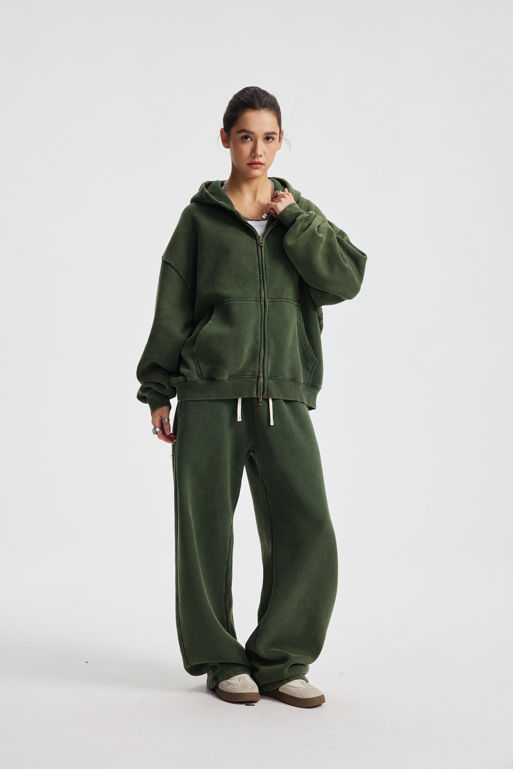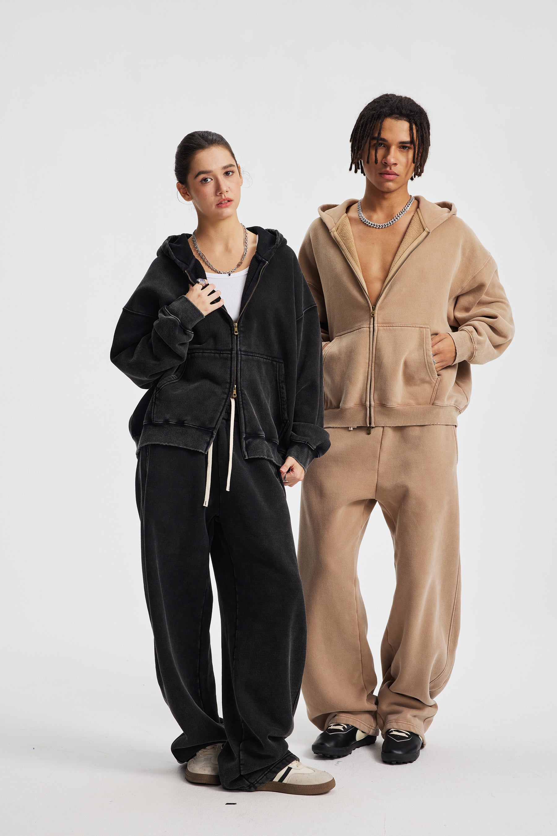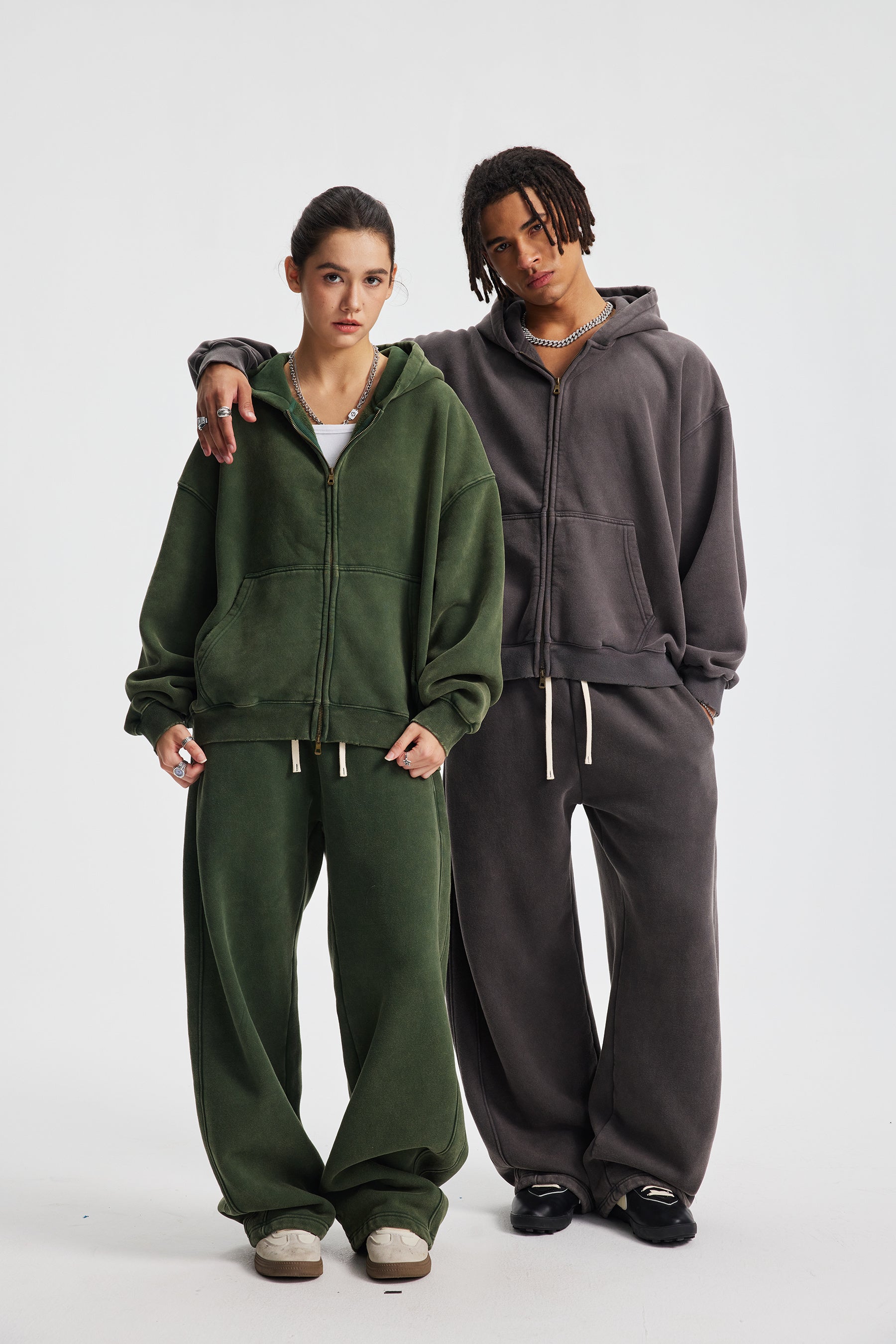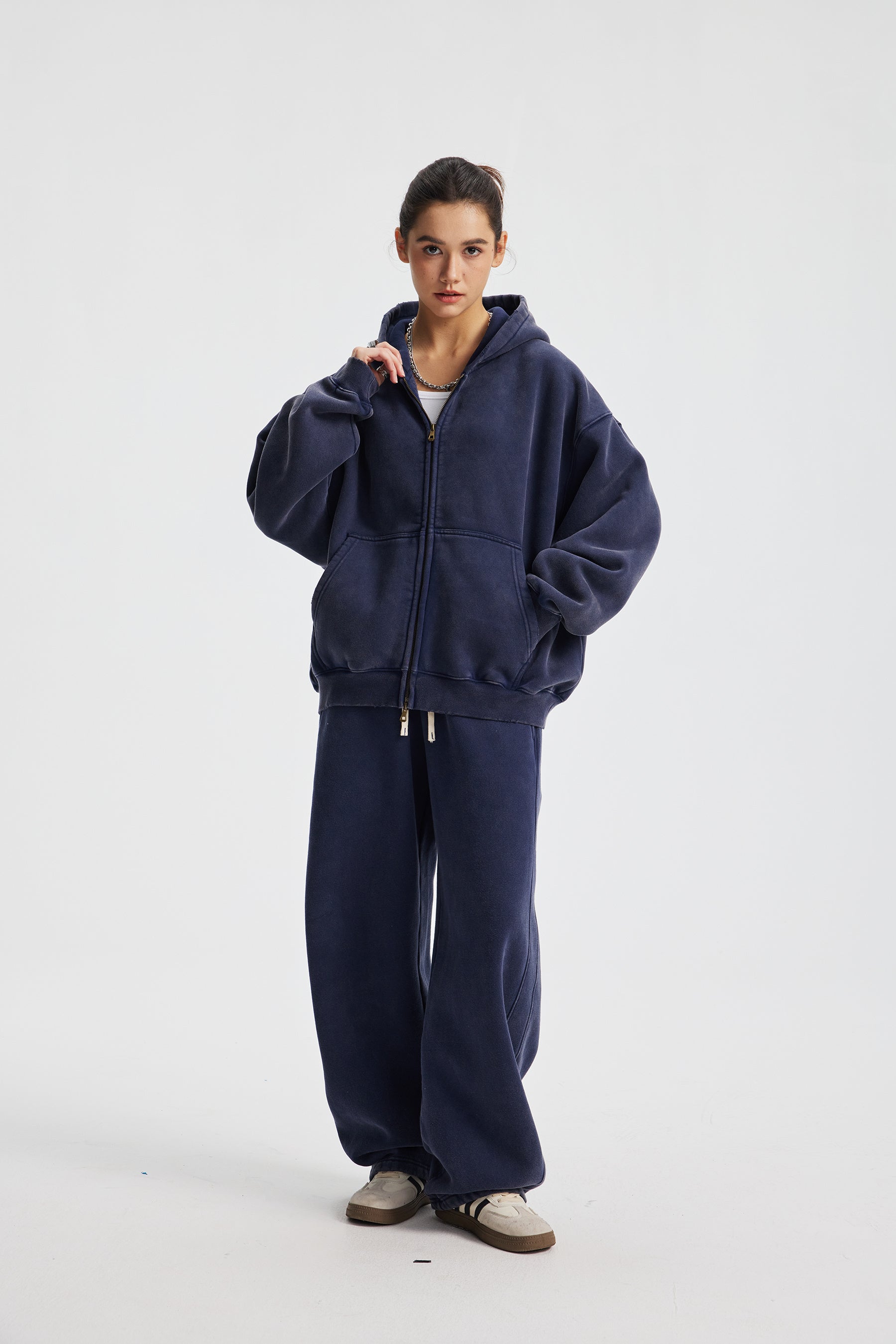 Introducing the Siggnia Apex Boxy Zip Hoodie, a premium boxy silhouette crafted from a 370g heavyweight fleece blend, combining 52% cotton and 48% polyester for comfort, durability, and structure. Featuring a wax-dye vintage washed finish, this hoodie offers a timeless aesthetic while delivering modern streetwear versatility. Designed with a full-zip front closure, kangaroo pocket, and clean construction, it merges functionality with elevated minimalism.