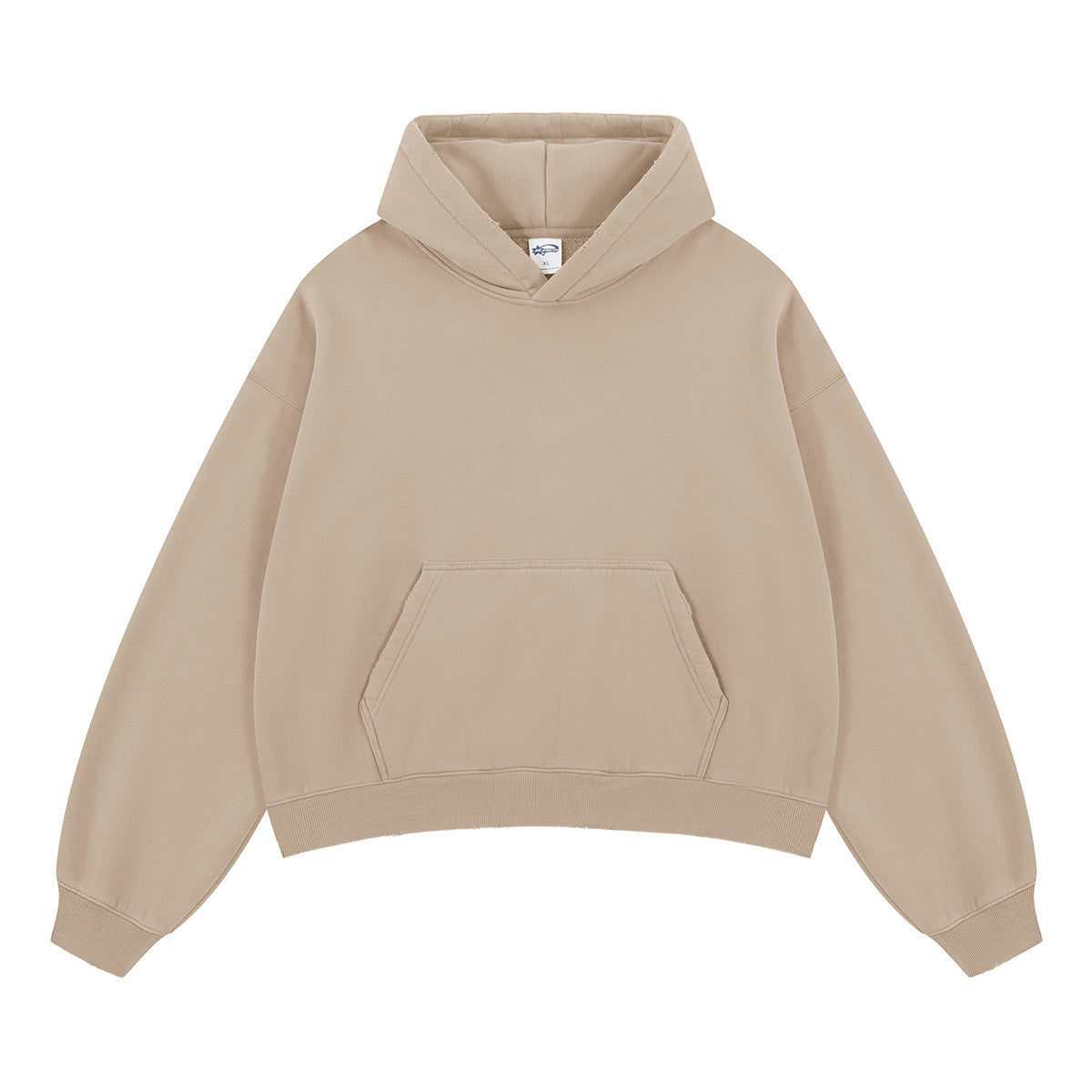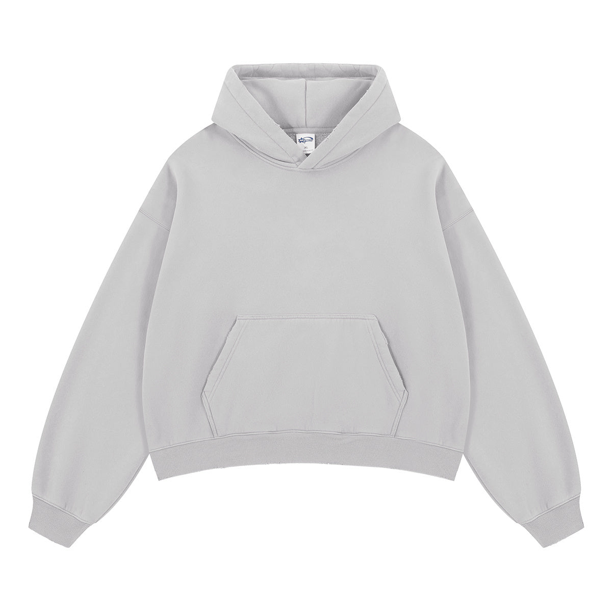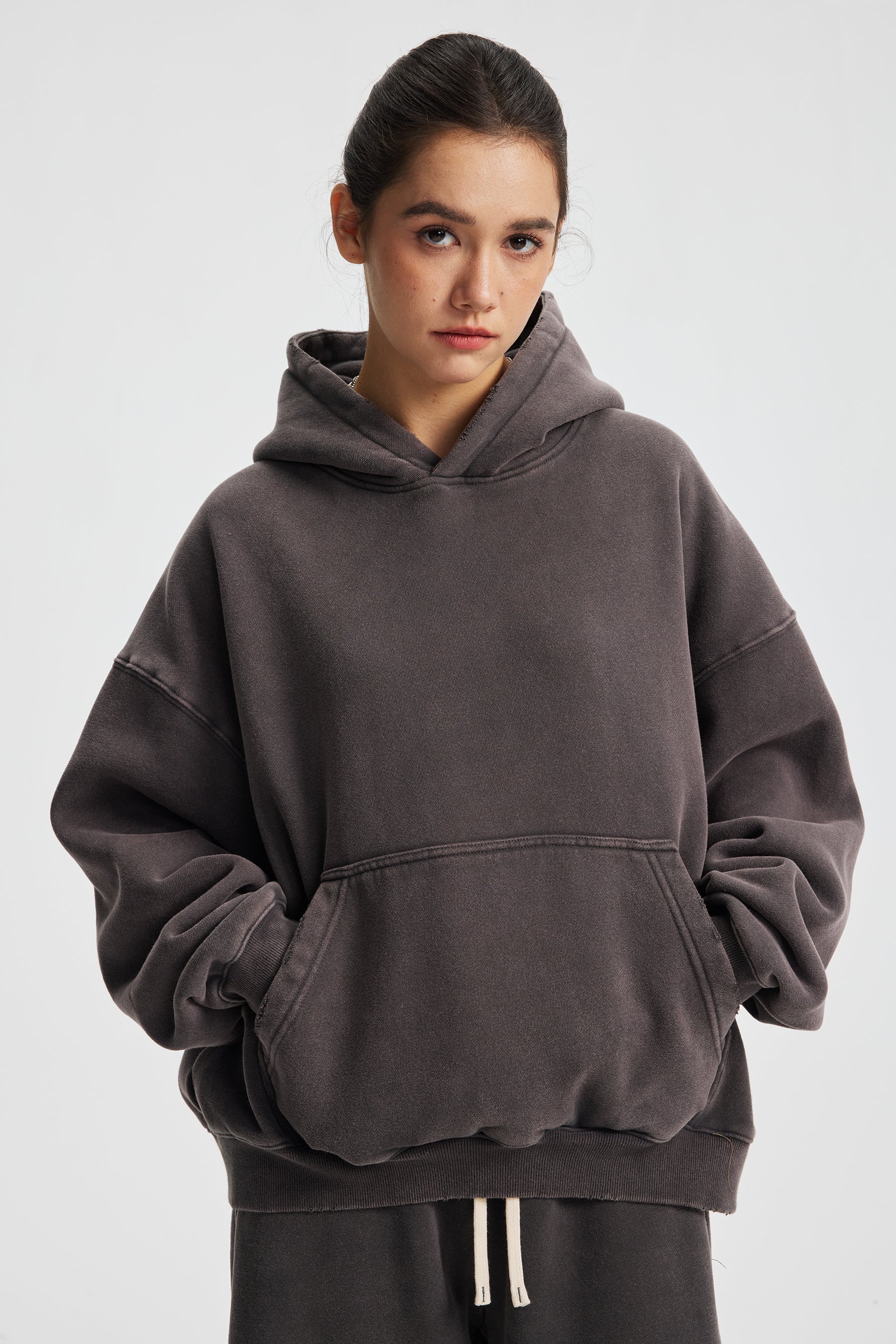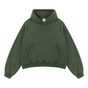 Introducing the Siggnia Core Boxy Fit Hoodie, a premium oversized silhouette crafted from a 370g heavyweight fleece blend, combining 52% cotton and 48% polyester for superior softness, durability, and structure. Designed with a boxy cropped fit, distressed raw-edge details, and a wax-dye vintage washed finish, this hoodie delivers a modern streetwear aesthetic with effortless versatility.