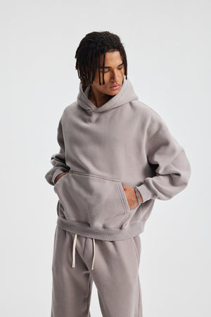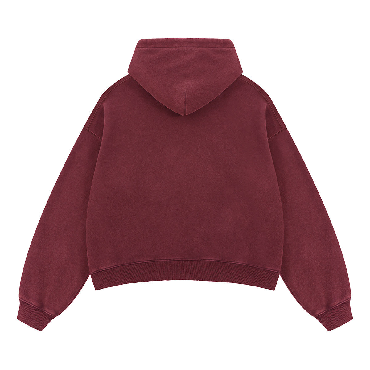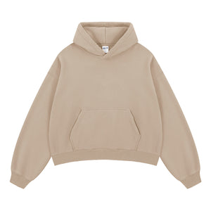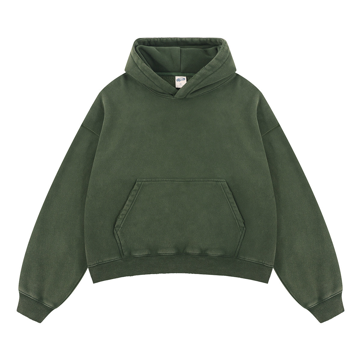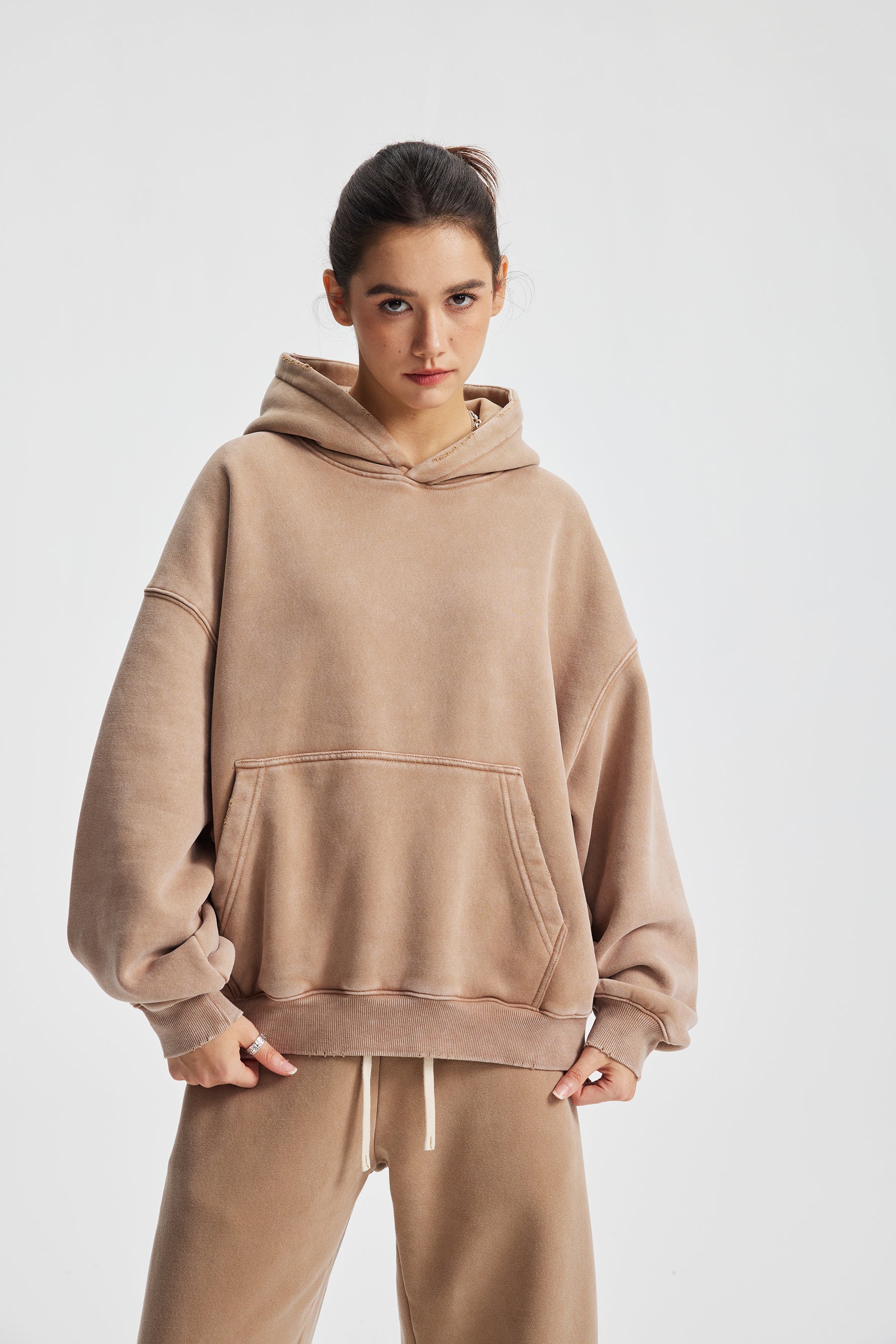 Introducing the Siggnia Core Boxy Fit Hoodie, a premium oversized silhouette crafted from a 370g heavyweight fleece blend, combining 52% cotton and 48% polyester for superior softness, durability, and structure. Designed with a boxy cropped fit, distressed raw-edge details, and a wax-dye vintage washed finish, this hoodie delivers a modern streetwear aesthetic with effortless versatility.