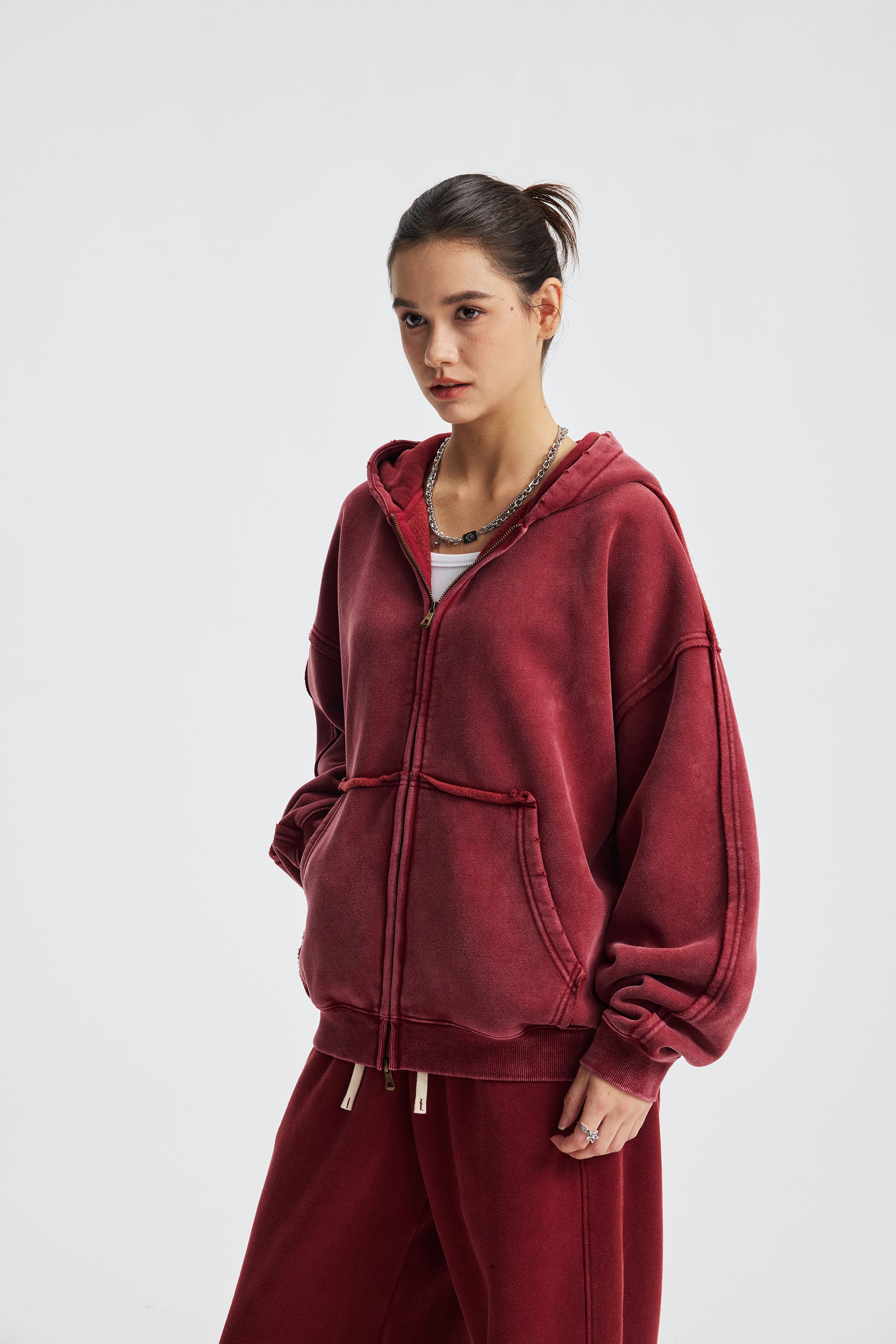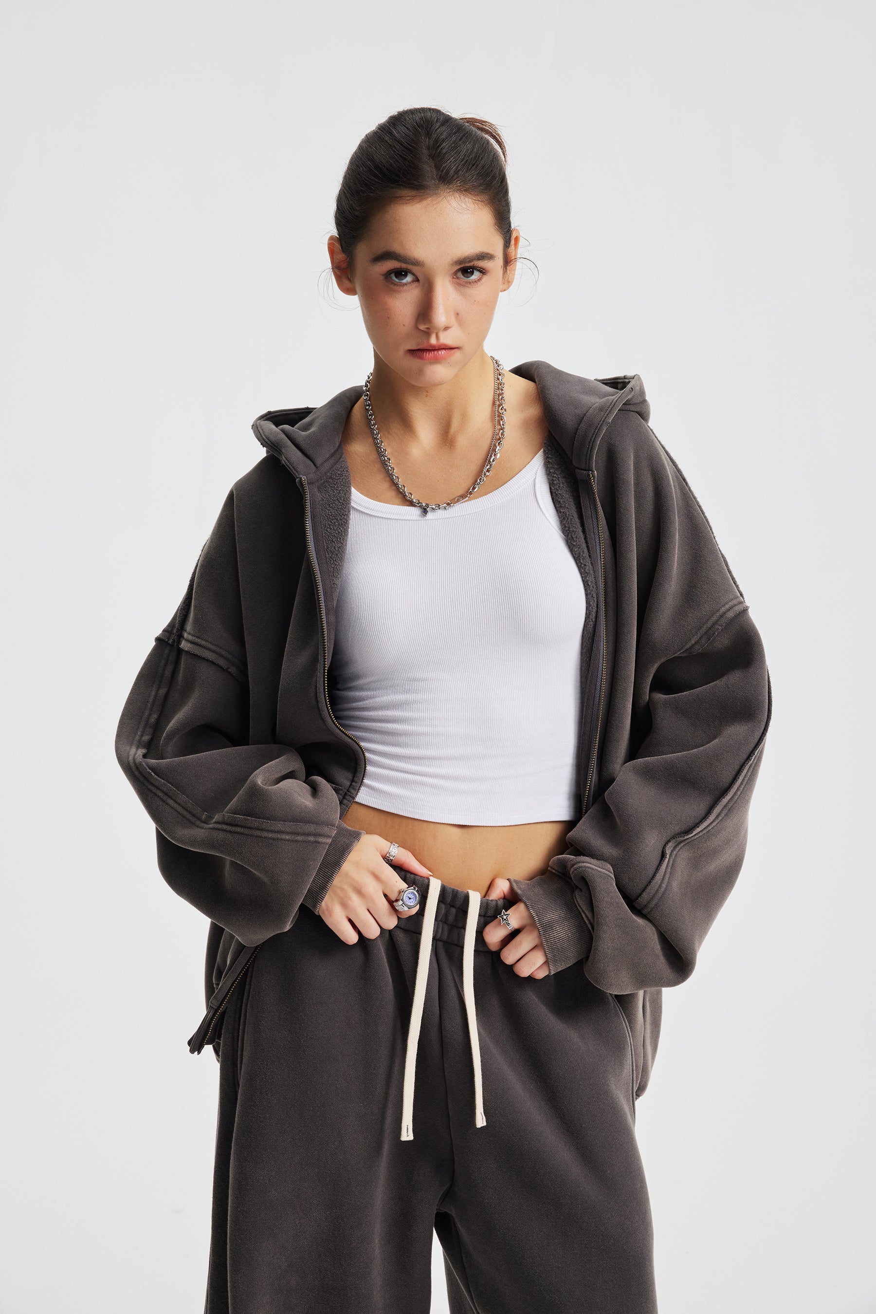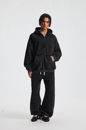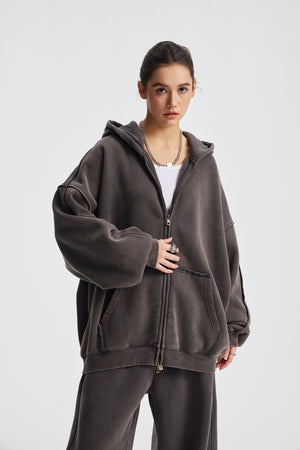 Introducing the Siggnia Nova Oversized Zip Hoodie, a premium oversized silhouette crafted from a 370g heavyweight fleece blend, combining 52% cotton and 48% polyester for comfort, structure, and elevated durability. Featuring a dual full-zip closure, subtle distressed edges, and a wax-dye vintage washed finish, this hoodie redefines modern streetwear minimalism.