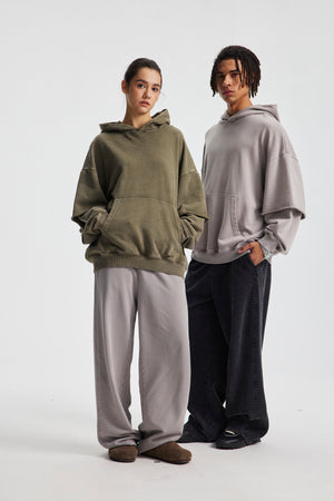 Introducing the Siggnia Nexora Layered Hoodie, a premium 430g heavyweight hoodie designed for elevated streetwear styling. Featuring a unique layered sleeve effect and a refined wax-dye washed finish, this oversized silhouette delivers both comfort and a bold minimal aesthetic. Built to become a timeless essential in any curated wardrobe.